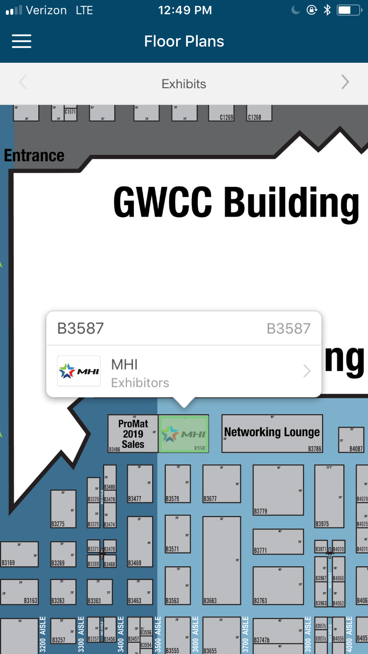 View an interactive floor plan of the MODEX show floor right on the mobile app. Zoom in and tap on a specific booth and it will show you the exhibitor name, booth number, company description, contact info and weblink. This is going to be the easiest and fastest way to locate the booth you are looking for.