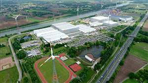 –The European Logistics Campus uses 100% renewable energy, and sources energy from five locally generated sources: wind, solar, geothermal, hydroelectric and biomass. Six wind turbines on-site produce enough electricity to power 5,000 households, and the on-site solar panels cover the size of three soccer fields.